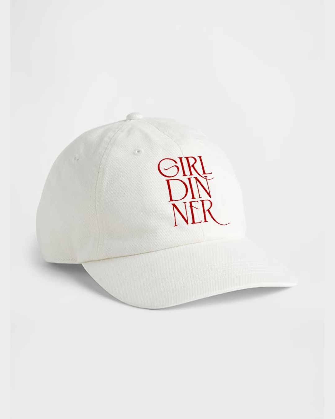 MERCH › Girl Dinner Dad Cap - White Image 1 of 1 Girl Dinner Dad Cap - White $34.00 Adjustable snap closure for a customizable fit.100% cotton Quantity: Add To Cart Added! Adjustable snap closure for a customizable fit.100% cotton